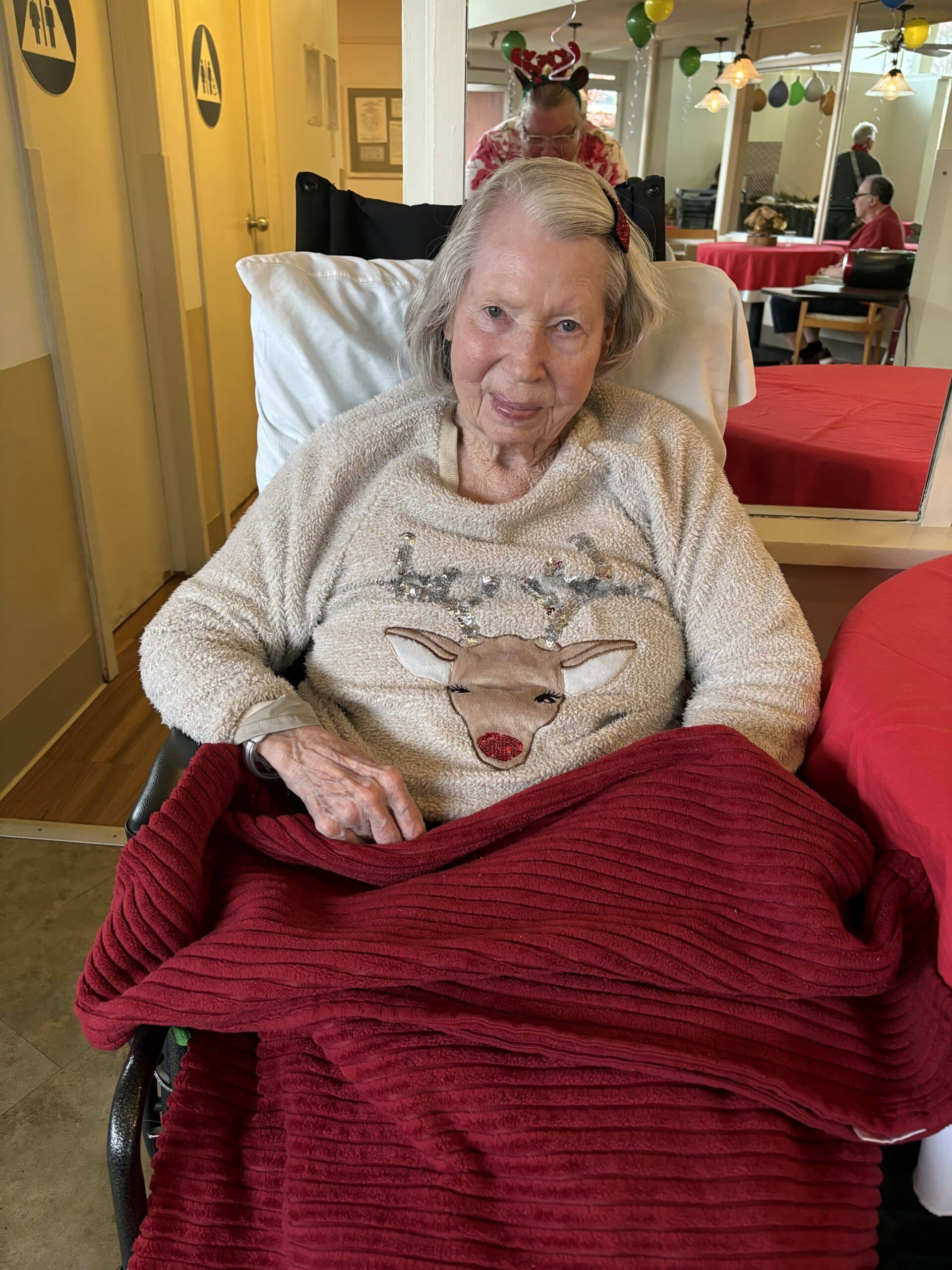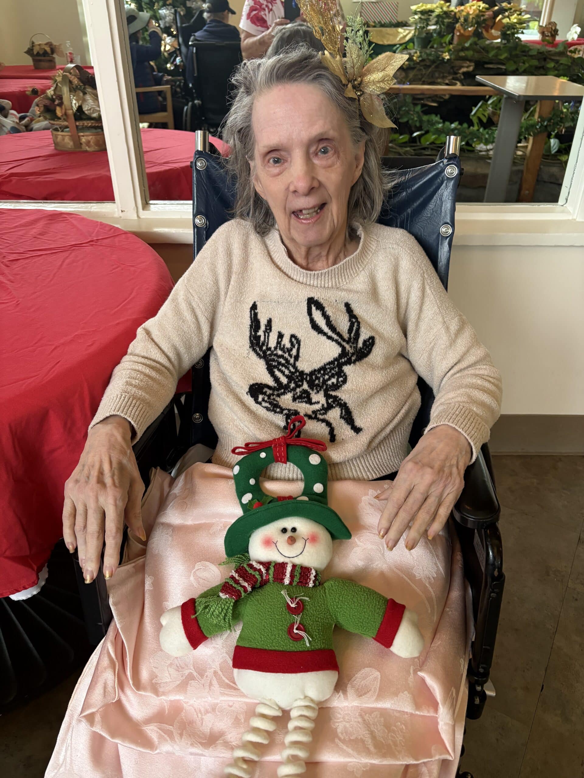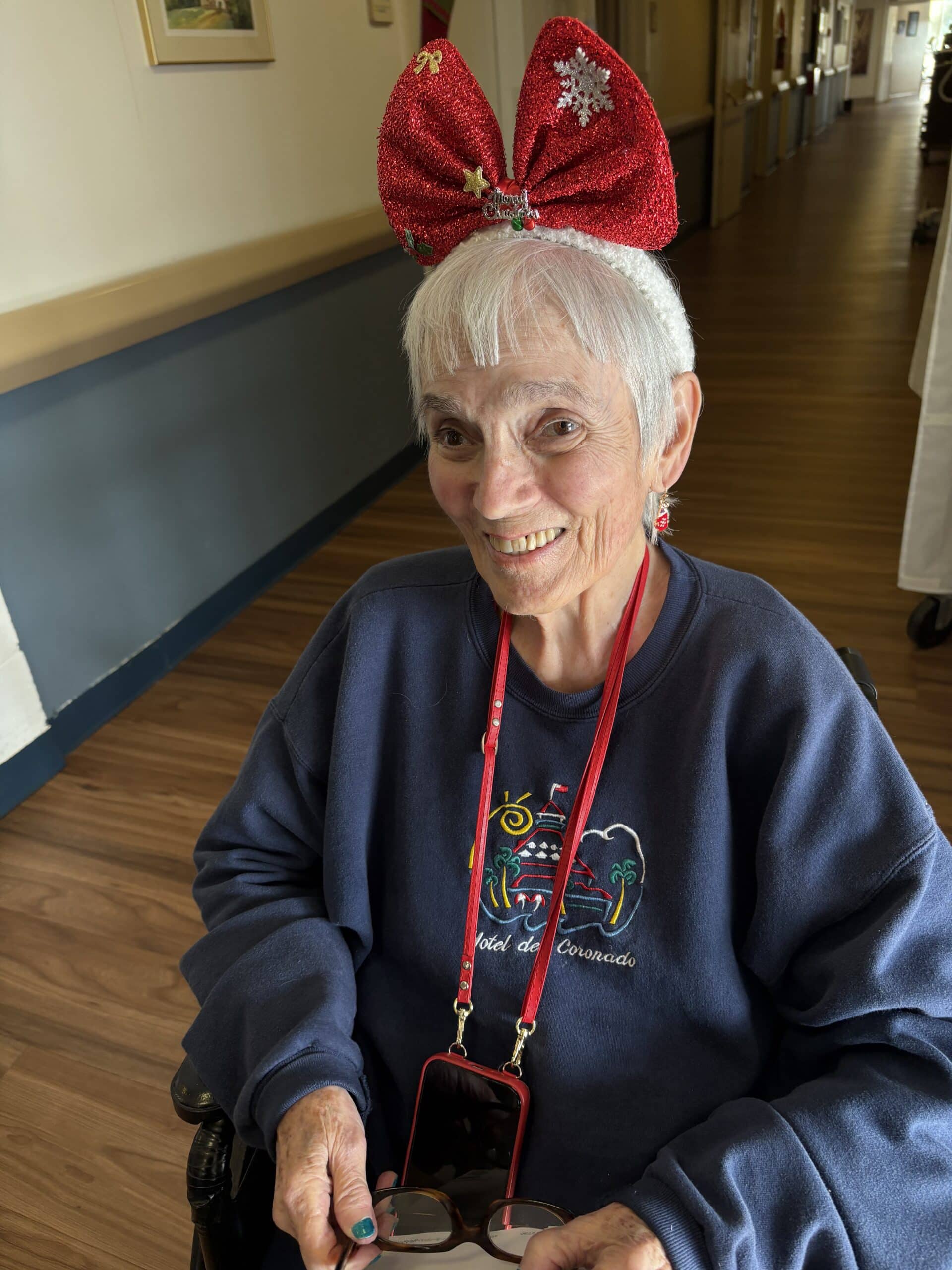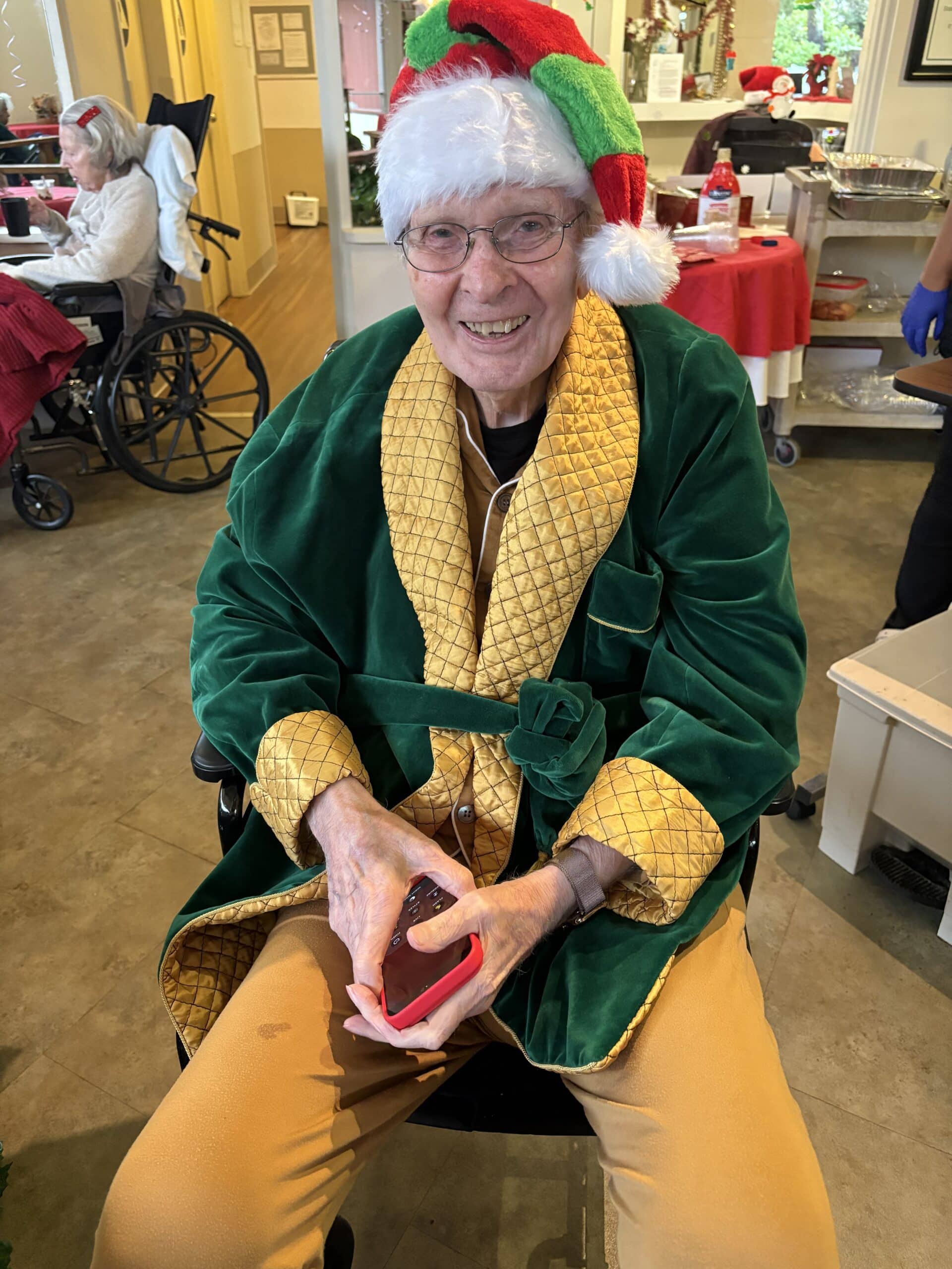 The week wrapped up on Friday with Holiday Headwear Day, one of our favorites, and maybe the most entertaining day of all. Santa hats, elf ears, reindeer antlers, and other festive headpieces appeared throughout the building. Residents especially enjoyed seeing the creativity on display, and many joined in by trying on headwear themselves. The whimsical accessories made the day feel lighthearted and joyful, ending the week on a high note.